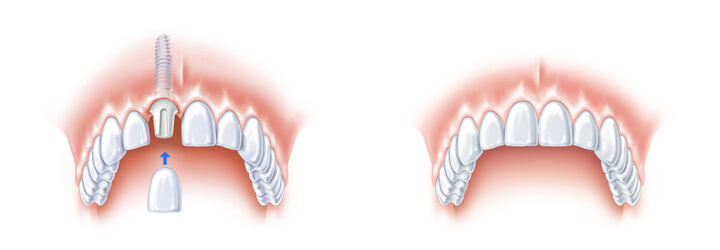 Nach einer Heilungsphase von drei bis fünf Monaten, die ein Provisorium überbrückt, wird die endgültige Krone auf der neuen Zahnwurzel befestigt und der Patient bekommt ein Tragegefühl, wie er es von seinen natürlichen Zähnen her kennt.